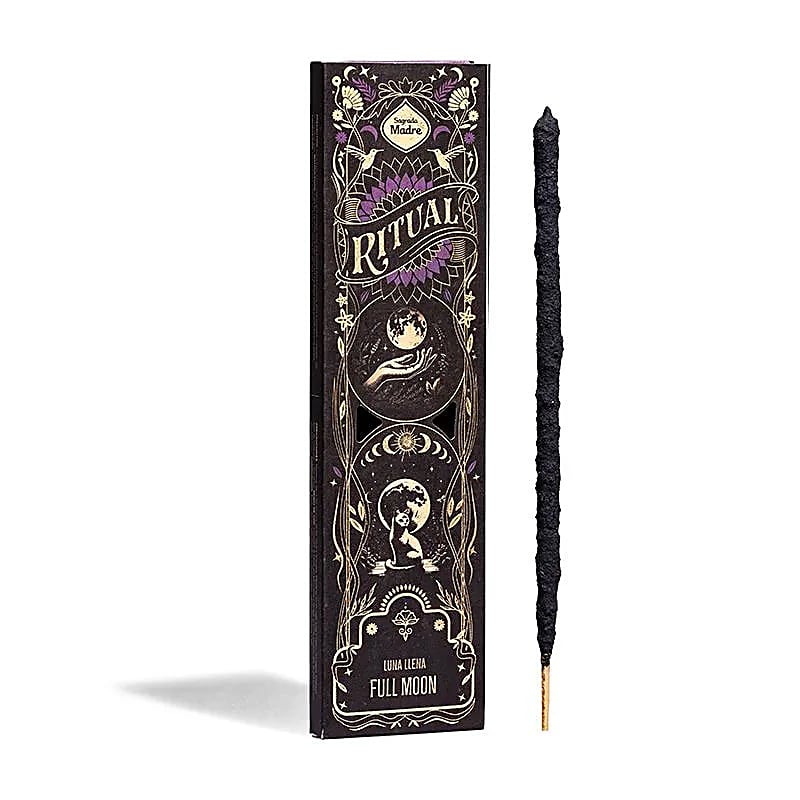 Upplev kraften i fullmånen med Sagrada Madre Ritualrökelse – Fullmåne, handgjord i Argentina med aromatiska koncentrerade oljor, kol, salt och växtbaserat bindemedel.